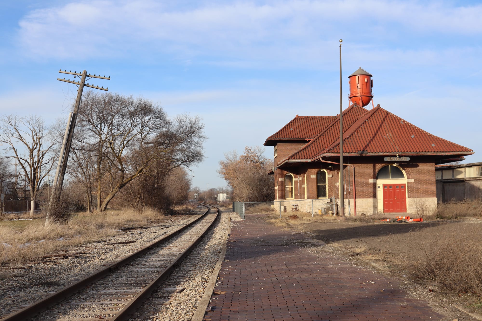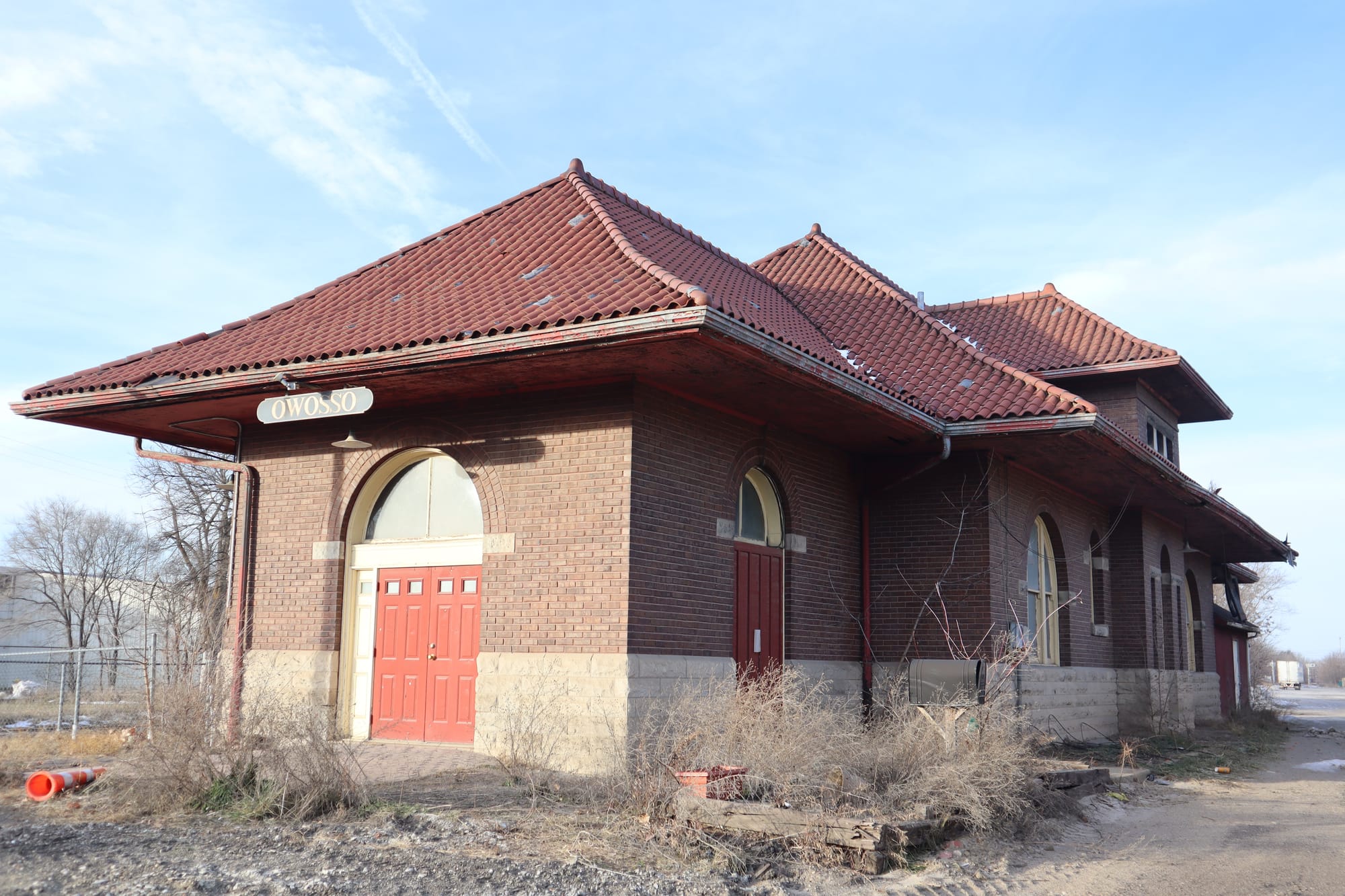 The abandoned Owosso rail depot. Looking at old rail maps, this appears to have been the Grand Trunk Western line through town