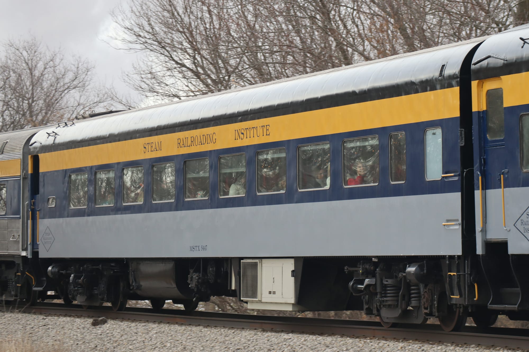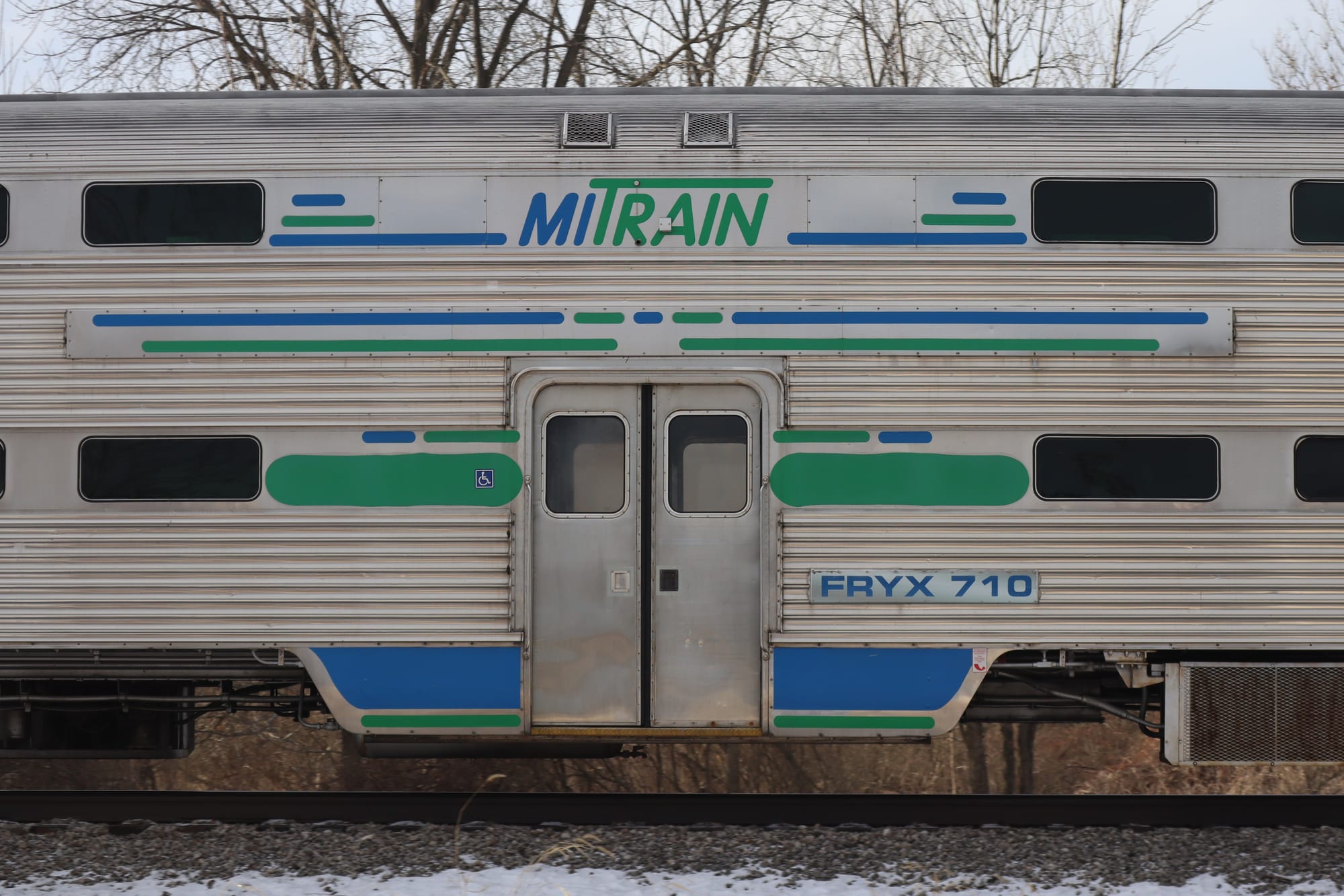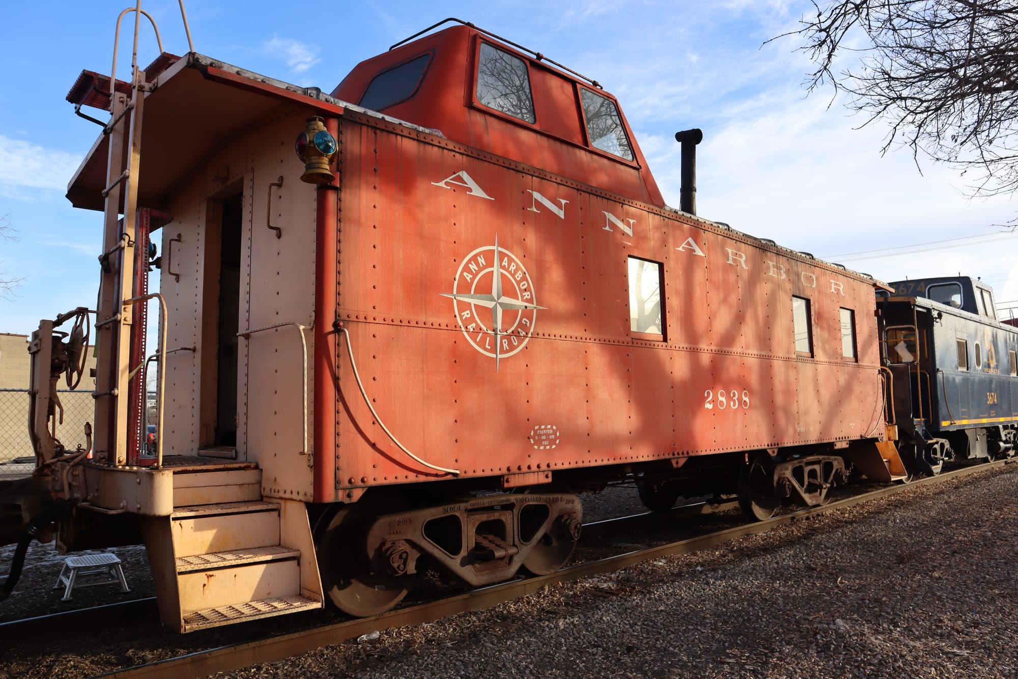 Also at this crossing, I got a better shot of the ex-Metra gallery car, painted up in the livery for MITrain, a never-realized commuter rail between Ann Arbor and Detroit. Plans began in 2009 with a study, and trains were supposed to be rolling in the mid 2010s or early 2020s, but since then the project has lost momentum (but apparently not officially canceled?) and the cars were sold to the Steam Railroading Institute and Nashville's WeGo Star commuter service.